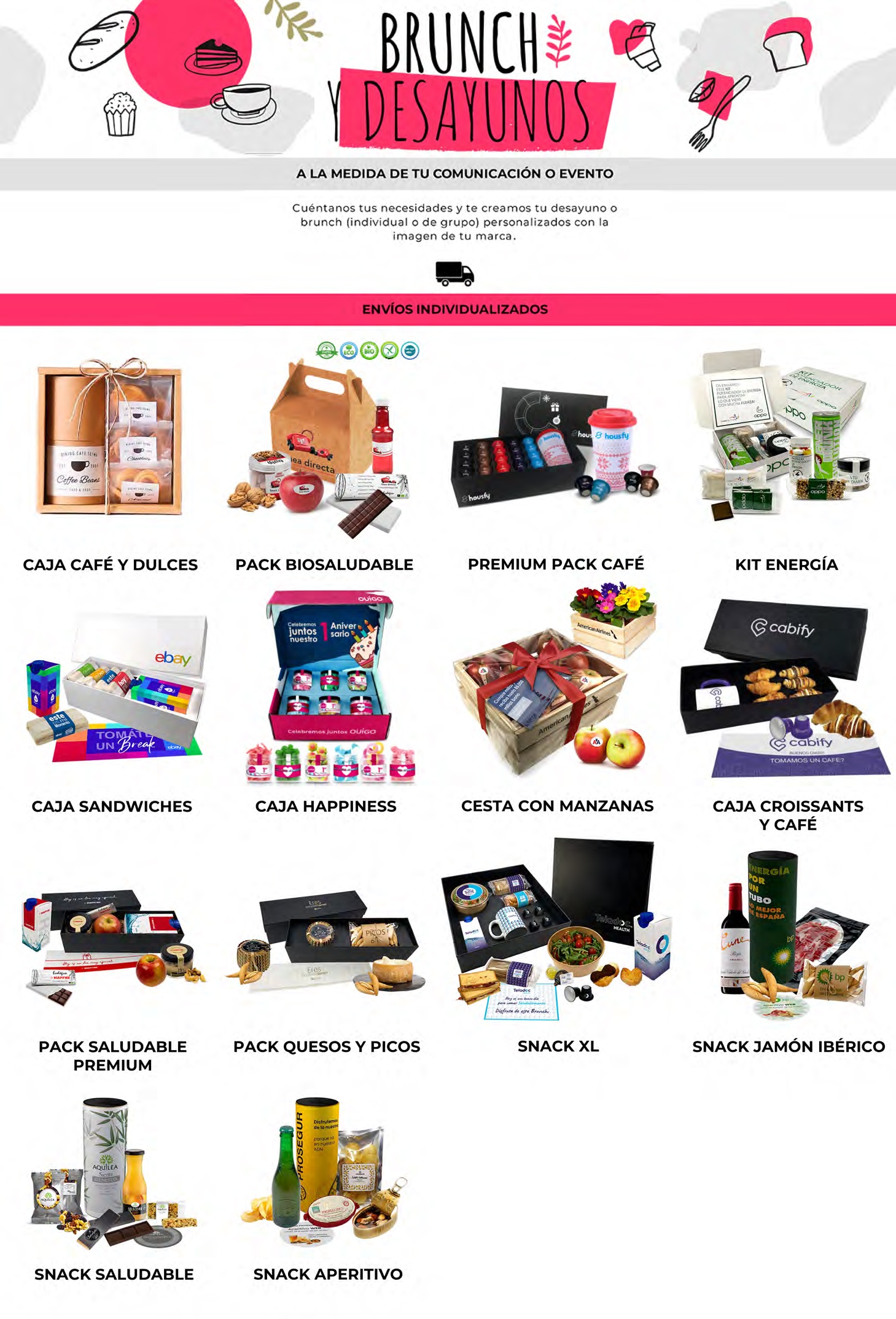 Cuéntanos tus necesidades y te creamos tu desayuno o Brunch (individual o de grupo) personalizados con la imagen de tu marca.