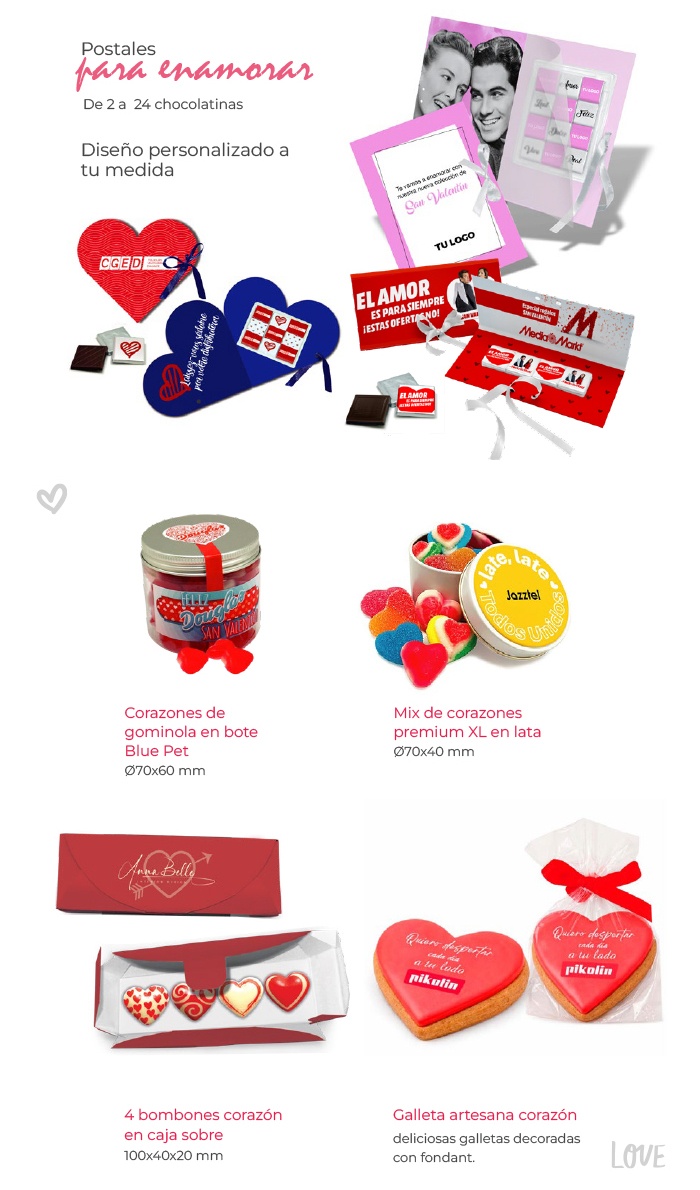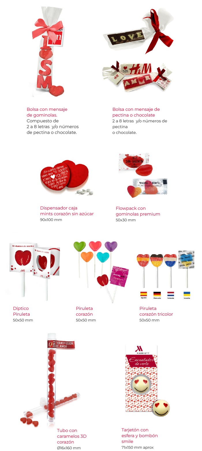 ¡Dulces gestos para celebrar el amor! Este San Valentín, cautiva corazones y endulza las relaciones empresariales con nuestra exquisita selección de chocolates y caramelos como artículos promocionales.