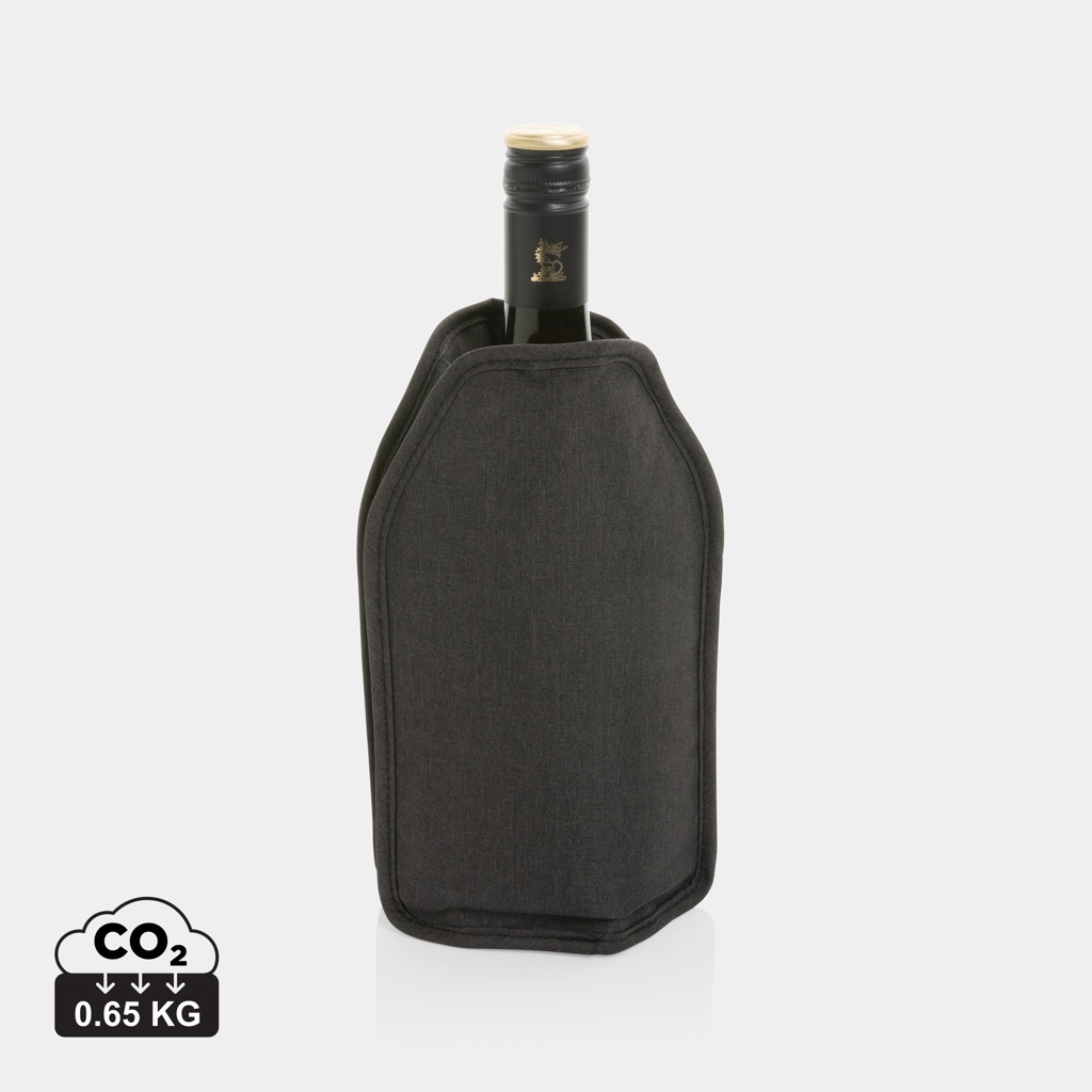 - Funda para enfriador Vino AWARE™ RPET, color: negro (Ref. P915.0101). Esta clásica funda enfriadora de Vino AWARE™ RPET mantiene las botellas de vino de tamaño estándar perfectamente frías durante horas. Simplemente coloca la funda en el congelador para preenfriarla durante al menos 4 horas y disfruta de un vino perfectamente frío en cualquier momento! Confeccionado con poliéster reciclado incrustado con el trazador AWARE™. Presentado en embalaje kraft certificado FSC®. También en colores azul marino y gris.