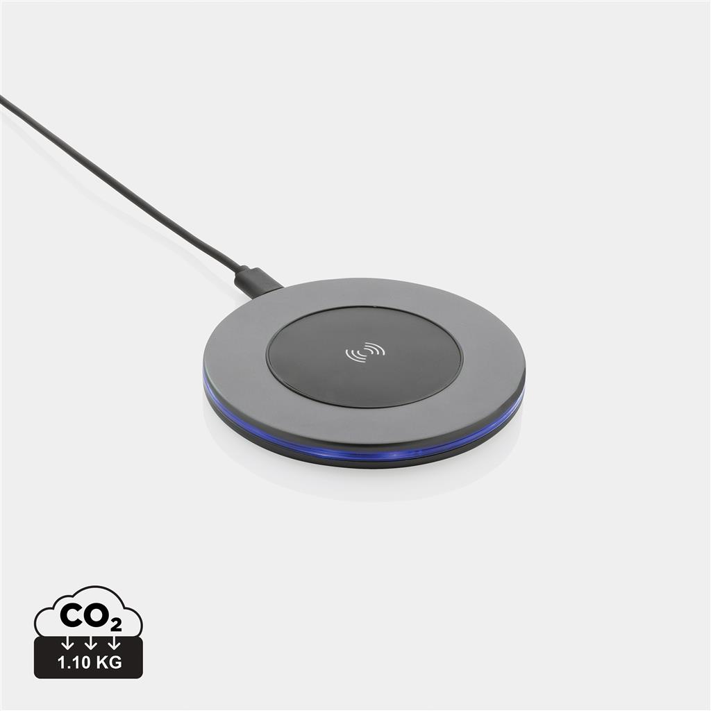 Cargador inalámbrico rápido de aluminio de 10W fabricado con aluminio reciclado certificado RCS (Recycled Claim Standard), ABS y TPE. Contenido reciclado total: 75% basado en el peso total del artículo. La certificación RCS garantiza una cadena de suministro completamente certificada de los materiales reciclados. El aluminio no pierde sus características en el proceso de reciclaje y puede reciclarse infinitamente. Incluye cable de carga tipo C de 120 cm fabricado en aluminio reciclado certificado RCS, TPE y PET. Presentado en envase mixto FSC®. Entrada 9V/2A Salida: 9V/1.1A.