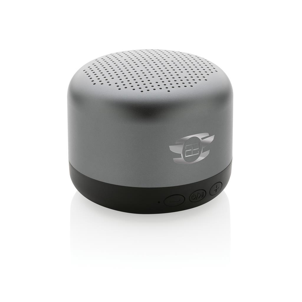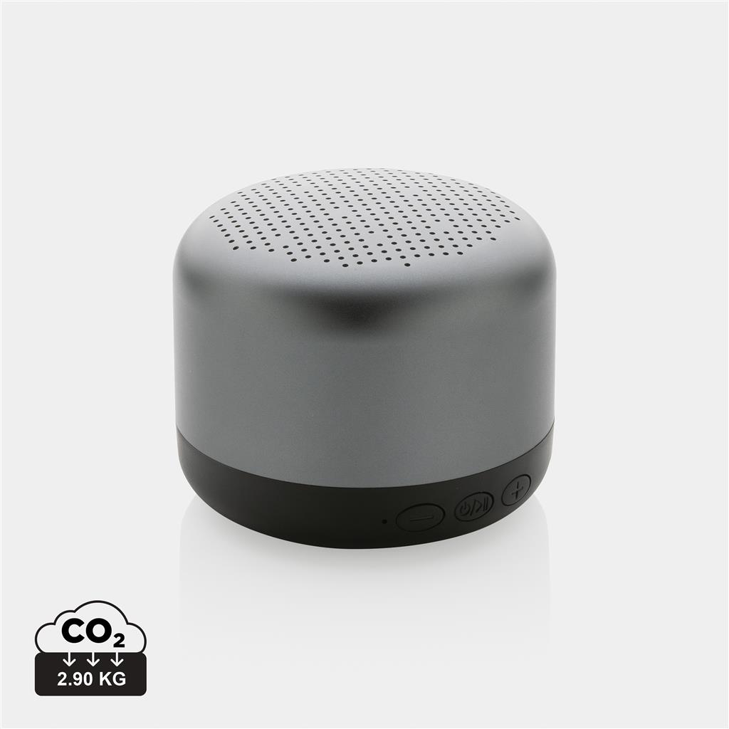 - Altavoz inalámbrico Terra RCS de aluminio reciclado de 5W, color: gris (Ref. P329.872).