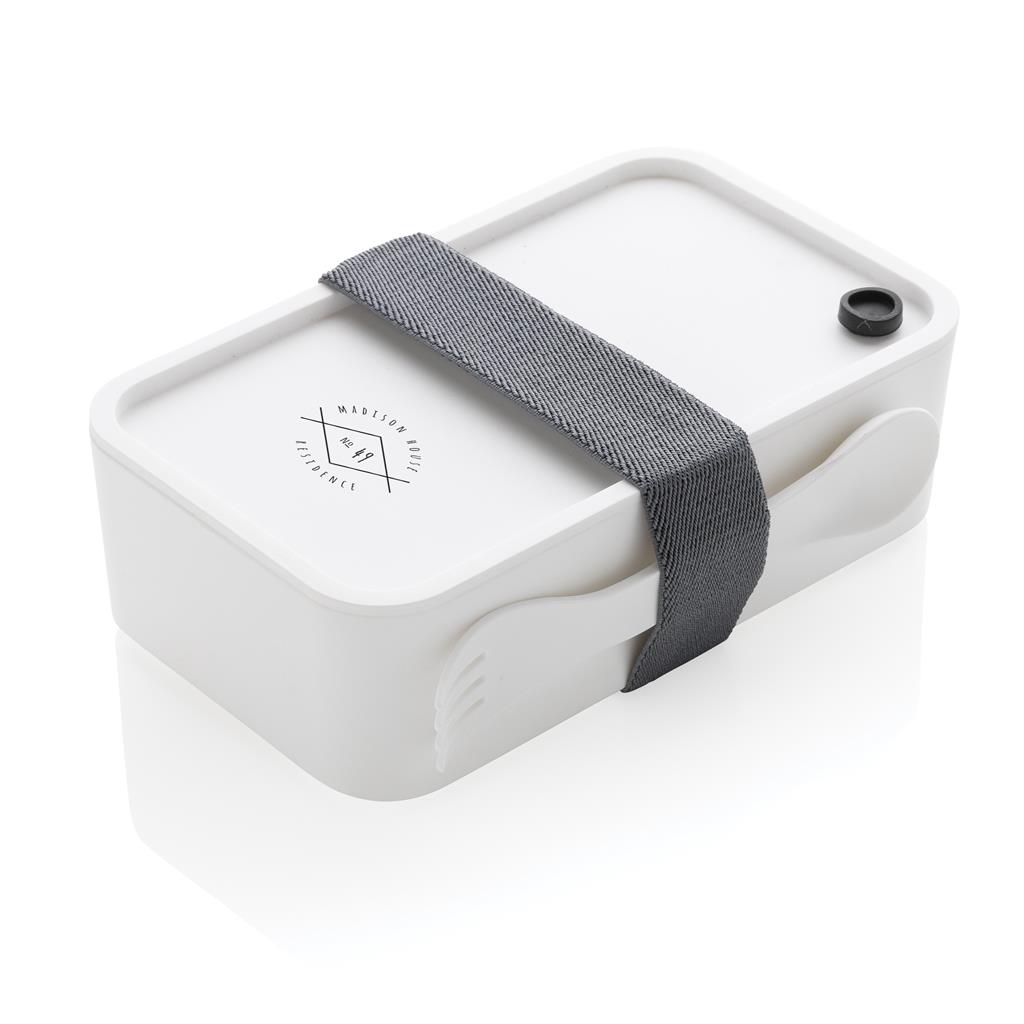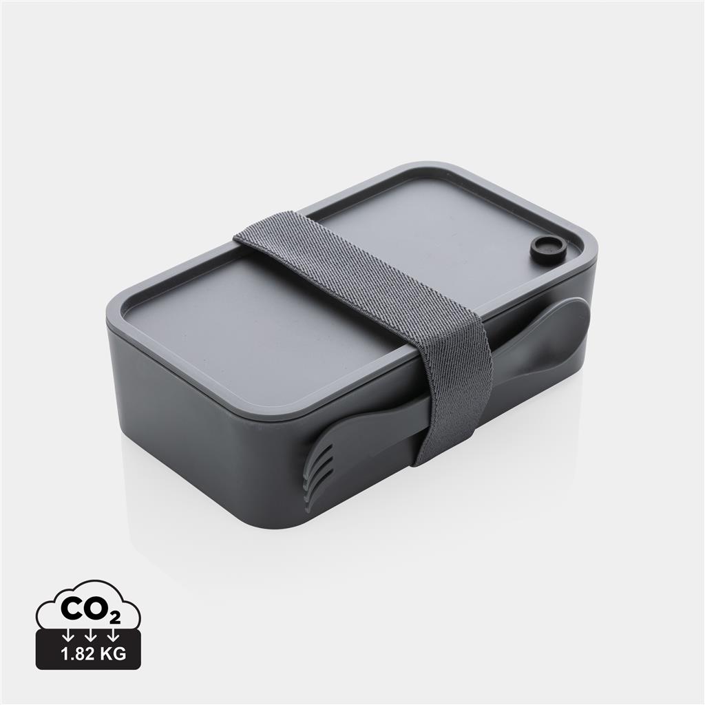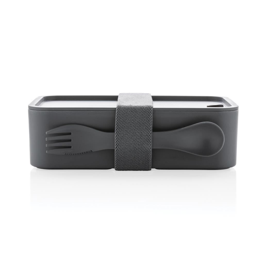- Fiambrera PP con cubiertos, colores: negro y blanco (Ref. P269.592).