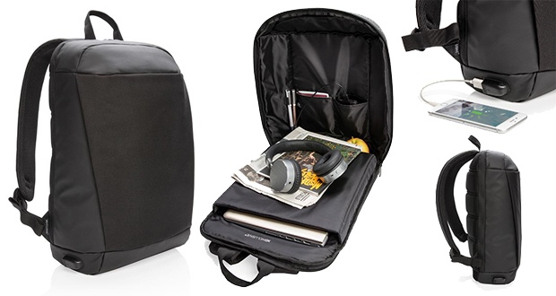 El interior de esta mochila unisex antirrobo está ingeniosamente acolchada para proteger todos tus valiosos aparatos electrónicos. Ahora puedes guardar tu ordenador portátil de 15,6″, tablet, auriculares y más sin temor a que se dañen o te los roben. Incorpora bolsillos con funda con protección RFID y salida lateral con USB. Sin PVC. Diseño registrado®.