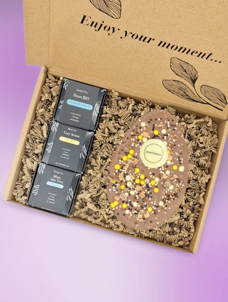 Más sets de regalo personalizados con té y chocolate