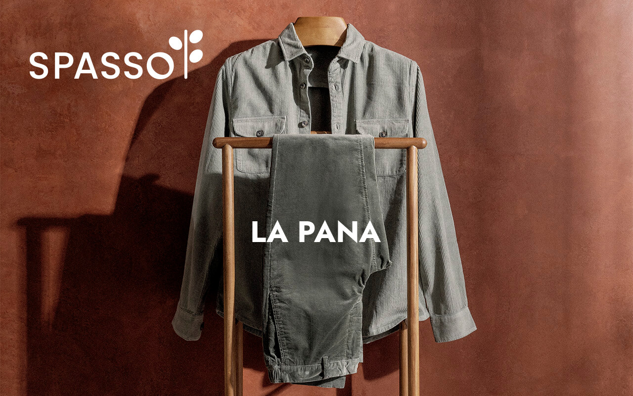 Con su textura aterciopelada y su aire sutilmente retro, la colección de pana revela una nueva expresión de la elegancia de Spasso. Confeccionada en algodón orgánico, combina confort natural, caída estructurada y durabilidad.