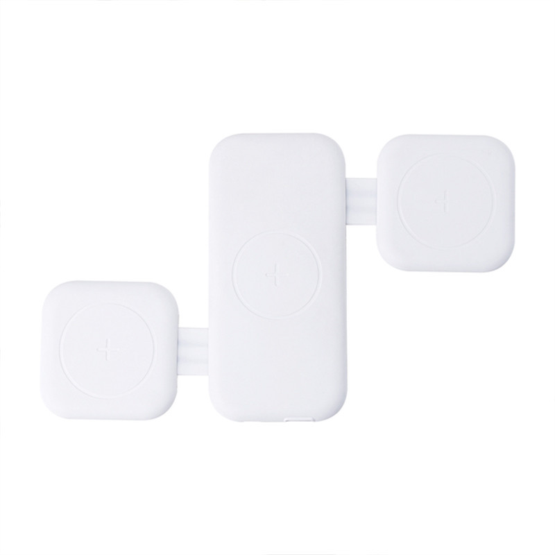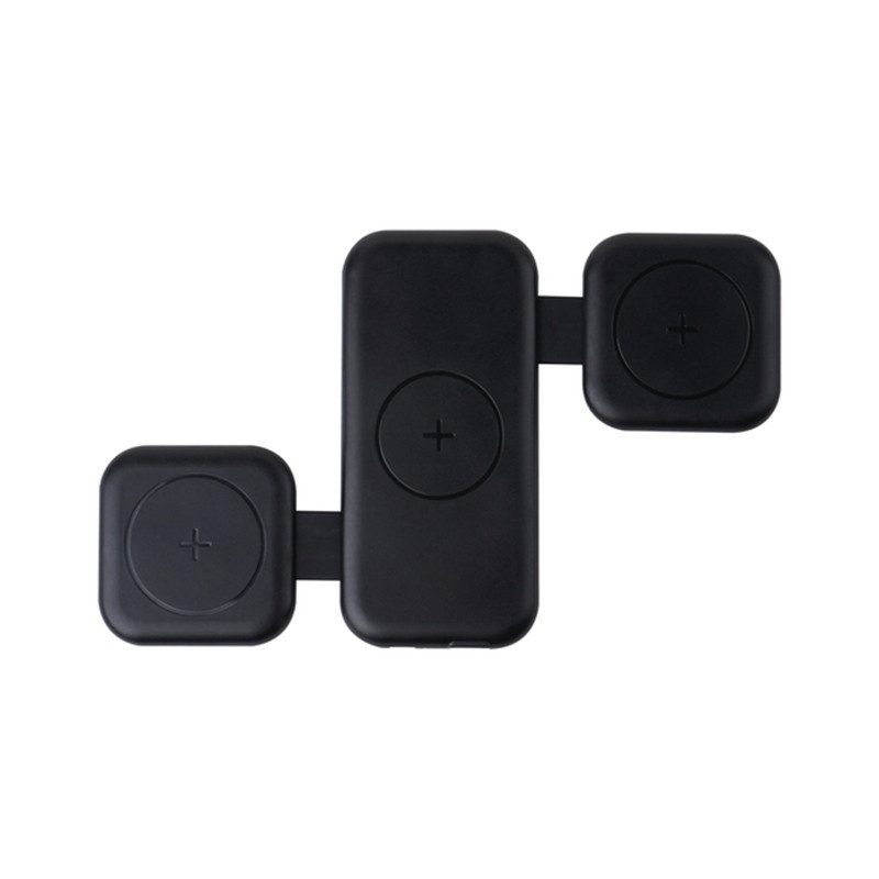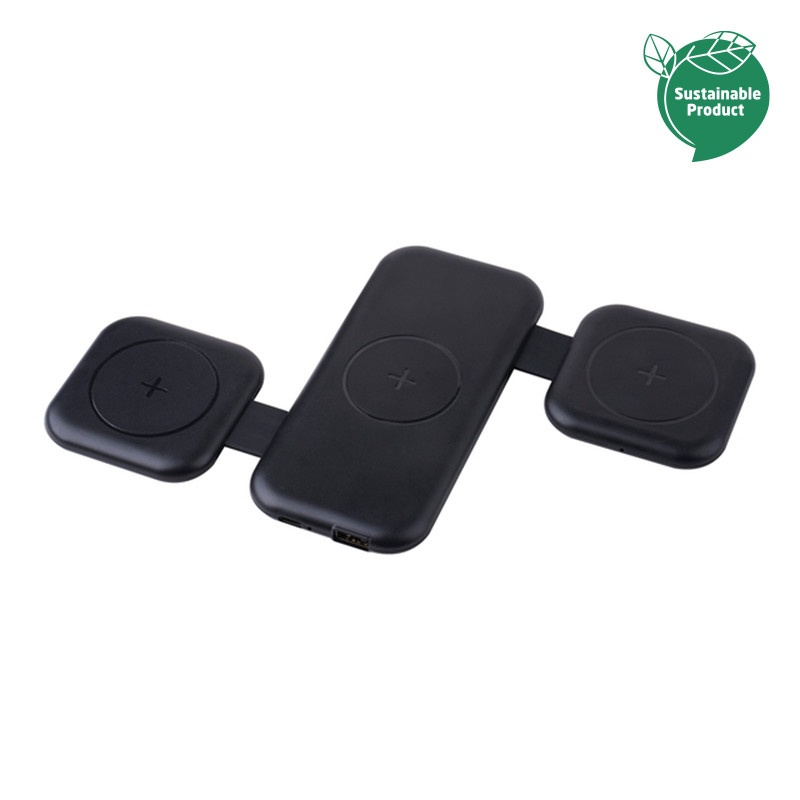 Su sistema de plegado le permite ganar espacio o llevarlo a todas partes. El smartphone, el reloj y los auriculares pueden cargarse simultáneamente con una potencia de 10 o 15 vatios. Y por último, se ha añadido un puerto USB en la parte trasera para poder cargar un cuarto dispositivo.